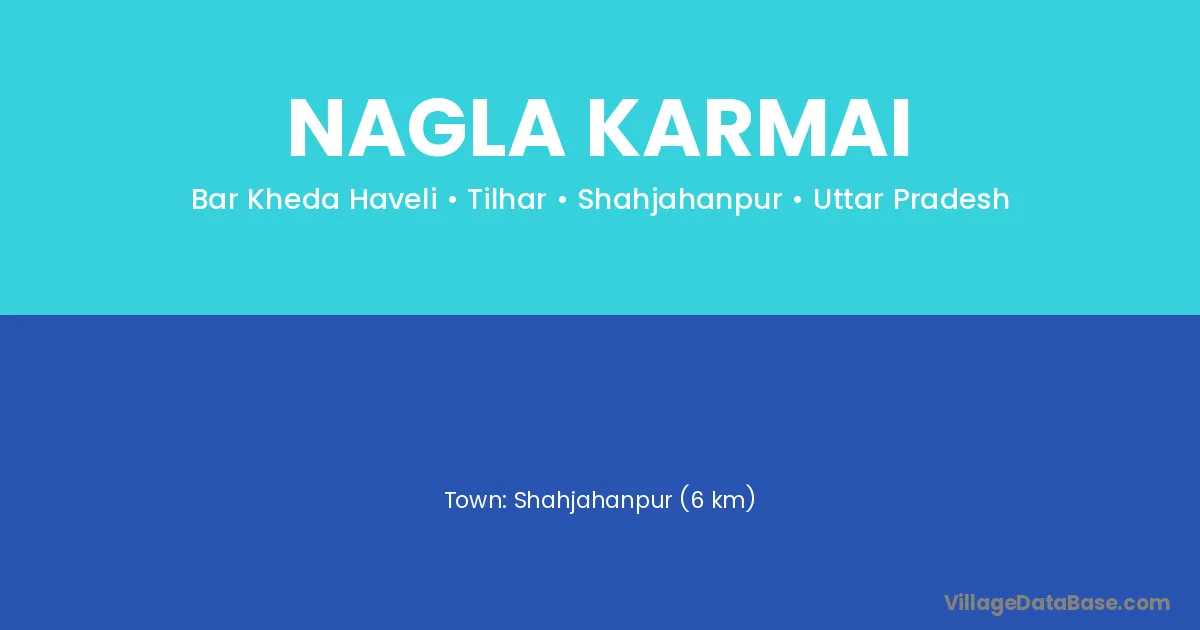 Shahjahanpur (6 km) is the nearest town to Nagla Karmai village for major economic activities and is located approximately 6 km away.