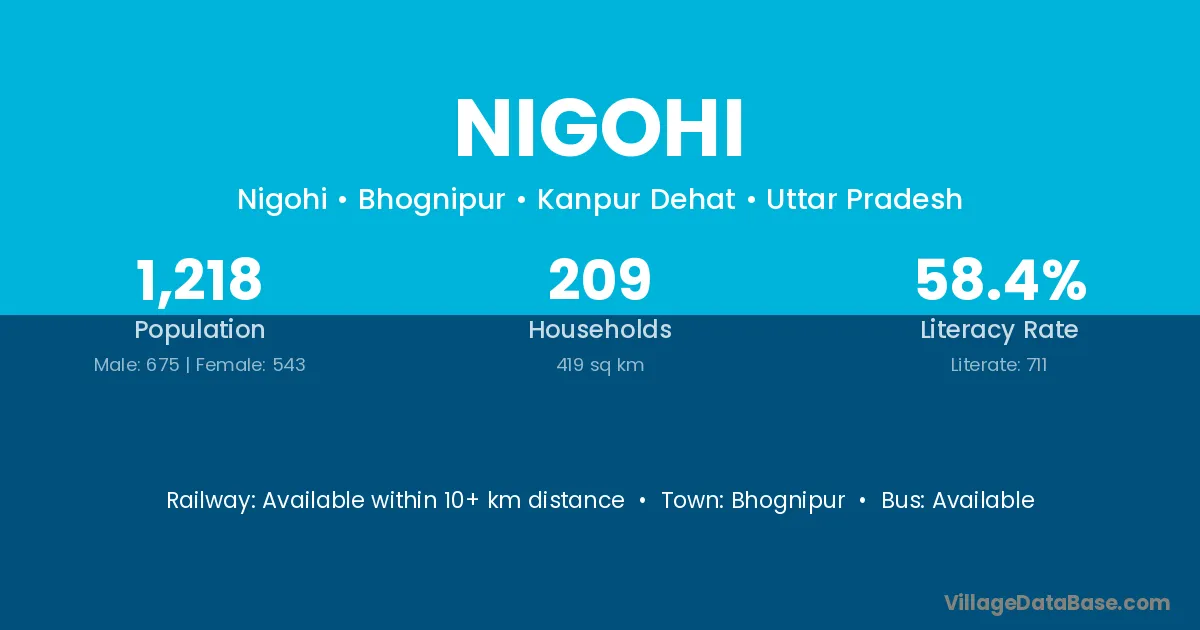 Shahjahanpur (25 km) is the nearest town to Nigohi village for major economic activities and is located approximately 25 km away.