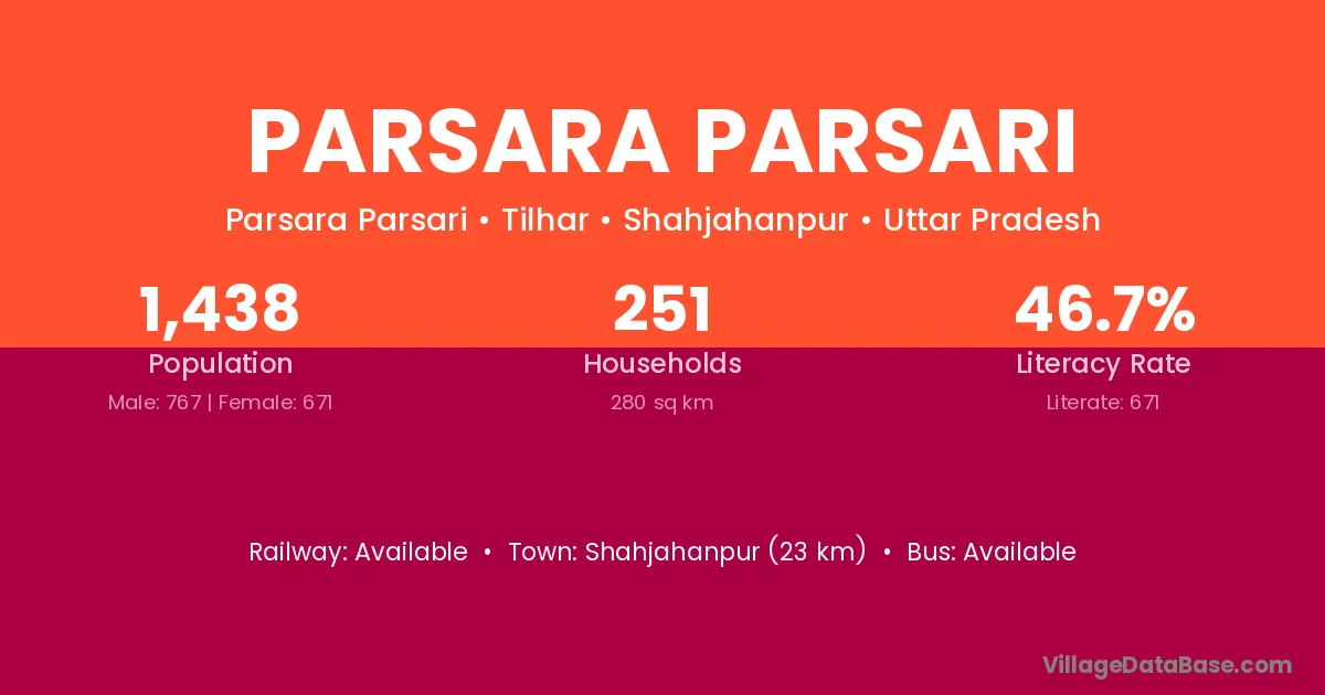 Shahjahanpur (23 km) is the nearest town to Parsara Parsari village for major economic activities and is located approximately 23 km away.