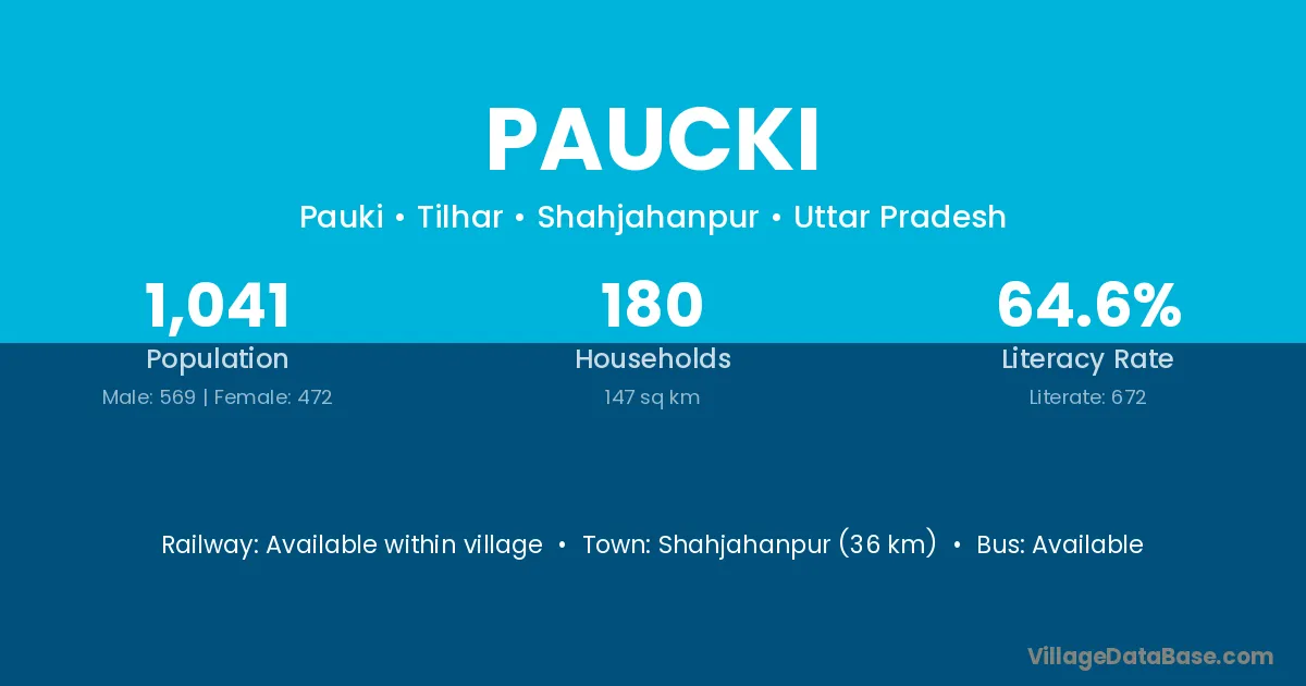 Shahjahanpur (36 km) is the nearest town to Paucki village for major economic activities and is located approximately 36 km away.