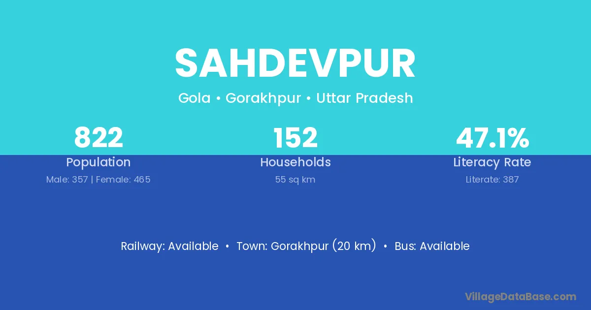 The literacy rate of Sahdevpur village is 47.75%. Male literacy stands at 56.16% and female literacy at 37.60%.