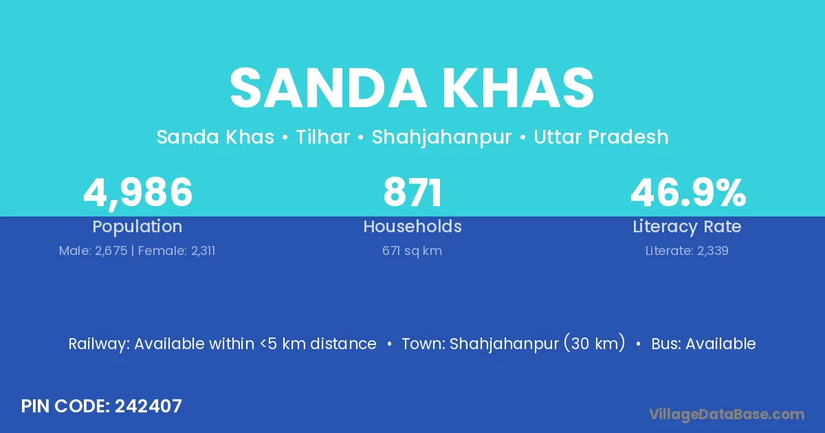 Shahjahanpur (30 km) is the nearest town to Sanda Khas village for major economic activities and is located approximately 30 km away.