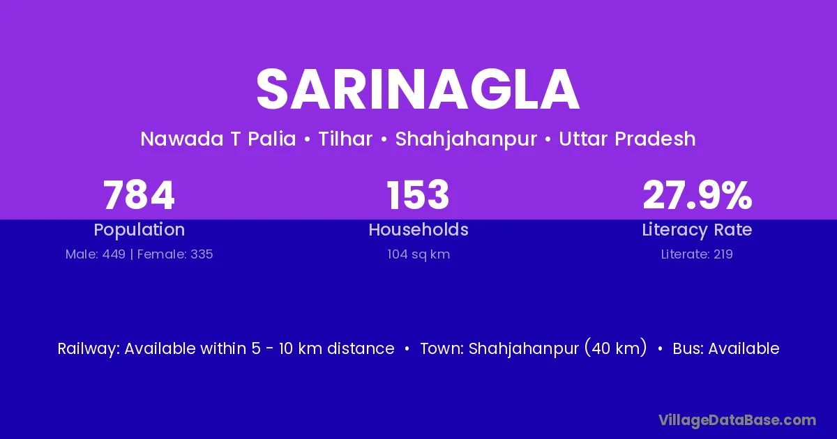 Shahjahanpur (40 km) is the nearest town to Sarinagla village for major economic activities and is located approximately 40 km away.