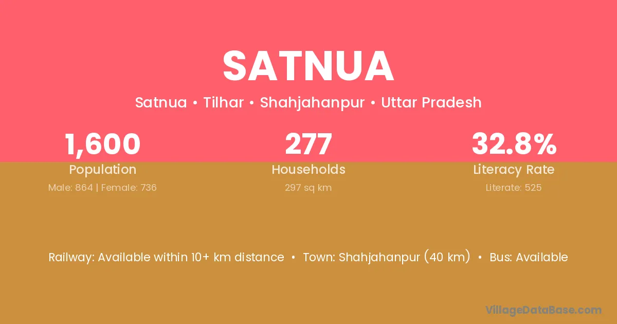 Shahjahanpur (40 km) is the nearest town to Satnua village for major economic activities and is located approximately 40 km away.