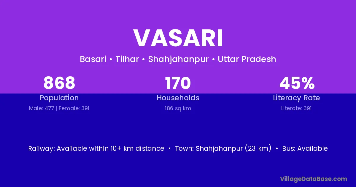 Shahjahanpur (23 km) is the nearest town to Vasari village for major economic activities and is located approximately 23 km away.