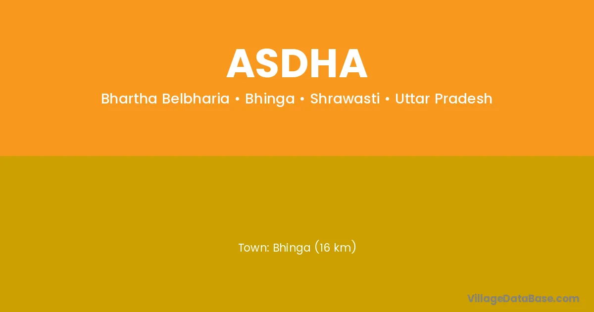 Bhinga (16 km) is the nearest town to Asdha village for major economic activities and is located approximately 16 km away.