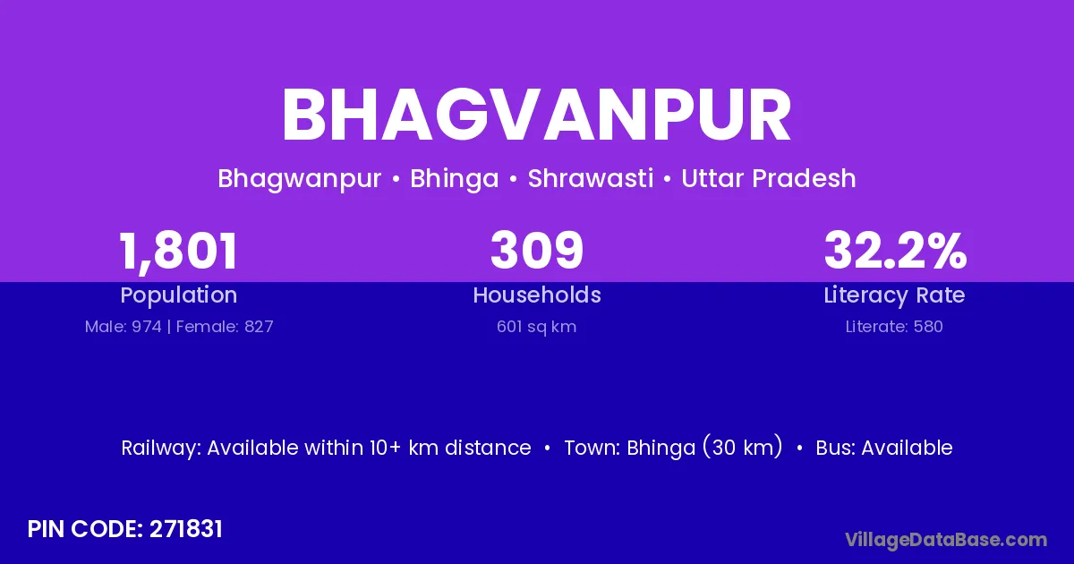 Bhinga (30 km) is the nearest town to Bhagvanpur village for major economic activities and is located approximately 30 km away.