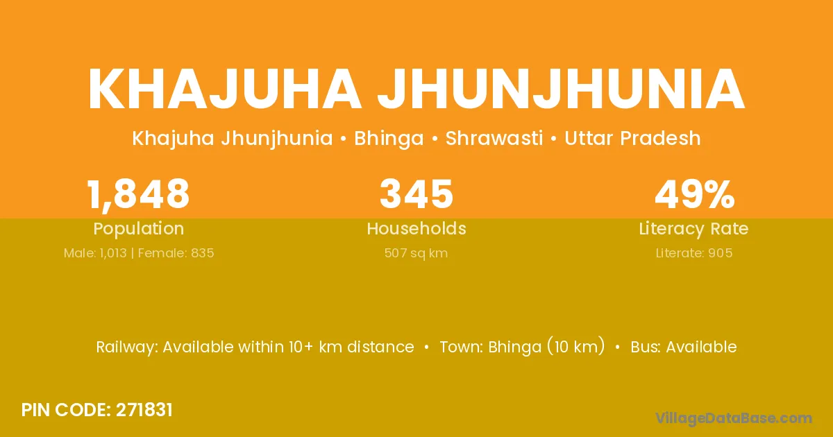Bhinga (10 km) is the nearest town to Khajuha Jhunjhunia village for major economic activities and is located approximately 10 km away.