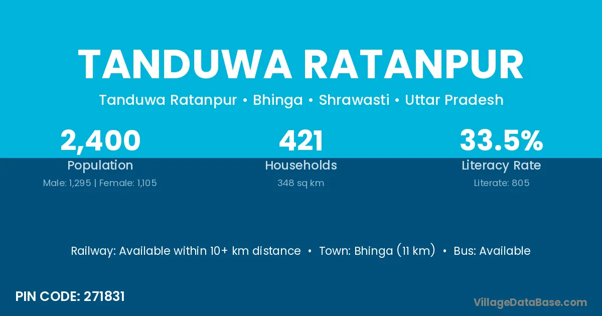 Bhinga (11 km) is the nearest town to Tanduwa Ratanpur village for major economic activities and is located approximately 11 km away.