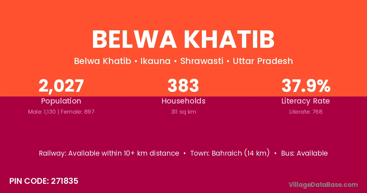 Belwa Khatib village has a total population of 2,027 people, of which 1,130 are males and 897 are females.