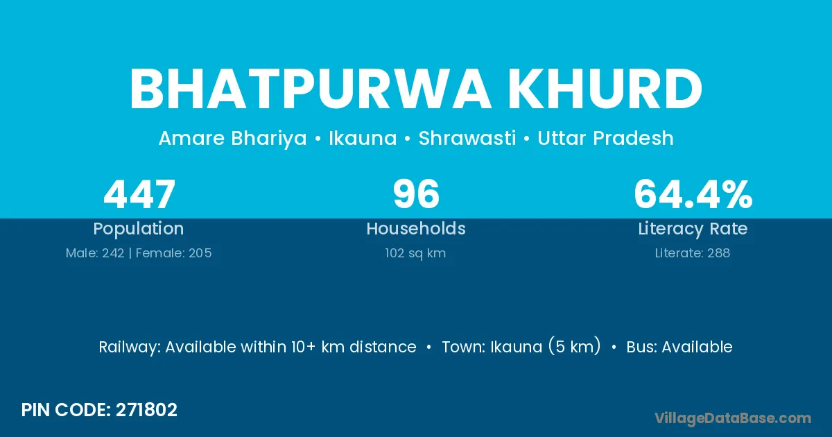 Bhatpurwa Khurd village has a total population of 447 people, of which 242 are males and 205 are females.
