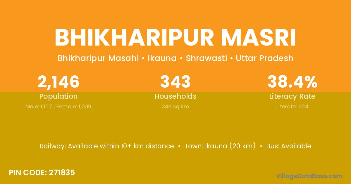 Bhikharipur Masri village has a total population of 2,146 people, of which 1,107 are males and 1,039 are females.