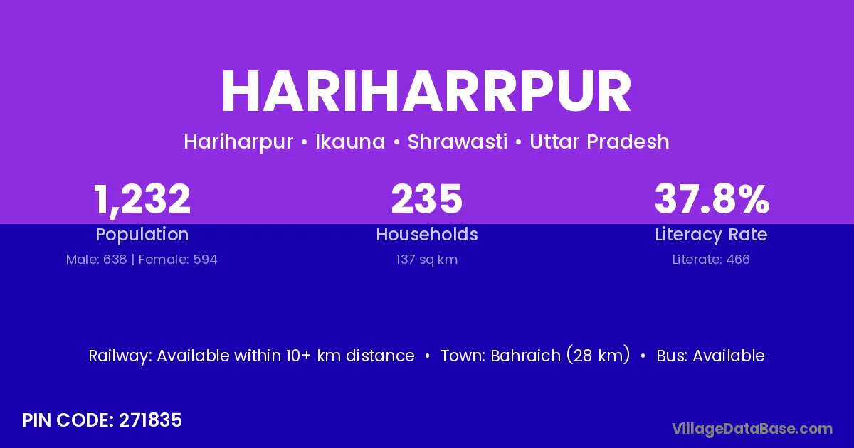 Bahraich (28 km) is the nearest town to Hariharrpur village for major economic activities and is located approximately 28 km away.