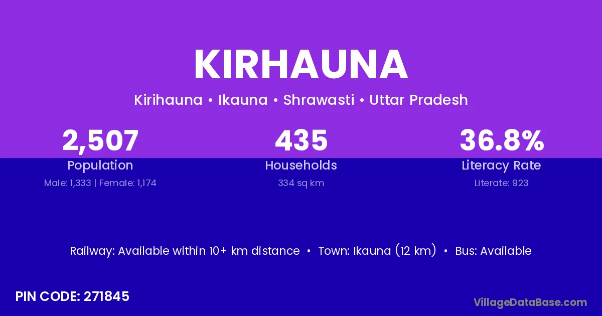 Ikauna (12 km) is the nearest town to Kirhauna village for major economic activities and is located approximately 12 km away.