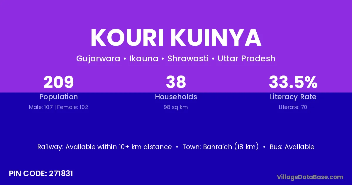Bahraich (18 km) is the nearest town to Kouri Kuinya village for major economic activities and is located approximately 18 km away.