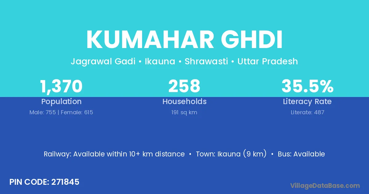 Ikauna (9 km) is the nearest town to Kumahar Ghdi village for major economic activities and is located approximately 9 km away.