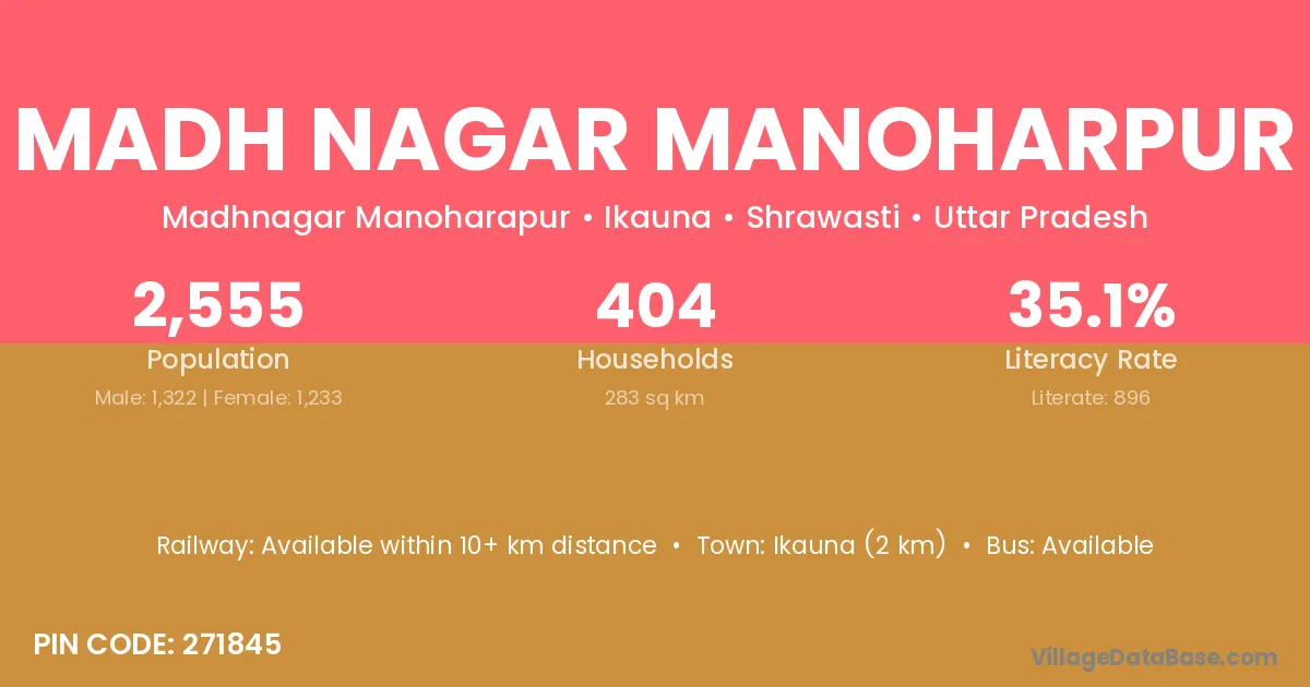 According to Census 2011 information, the village code of Madh Nagar Manoharpur village is 271845.