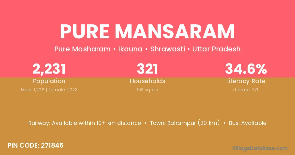 Balrampur (20 km) is the nearest town to Pure Mansaram village for major economic activities and is located approximately 20 km away.