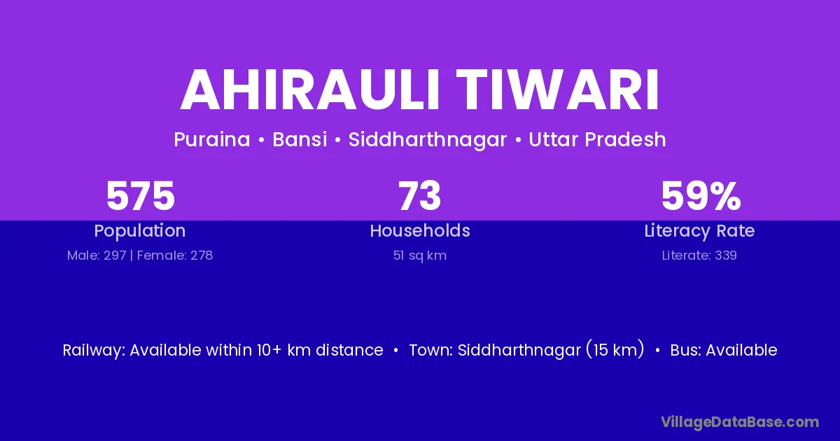Ahirauli Tiwari village has a total population of 575 people, of which 297 are males and 278 are females.