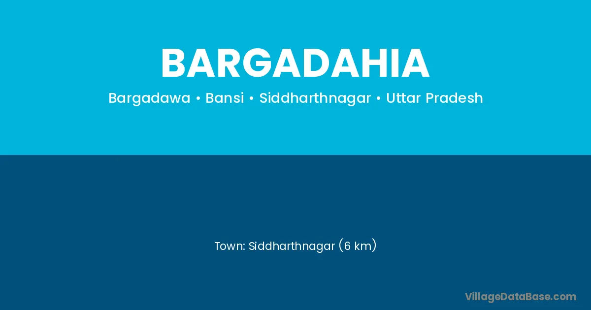 Siddharthnagar (6 km) is the nearest town to Bargadahia village for major economic activities and is located approximately 6 km away.