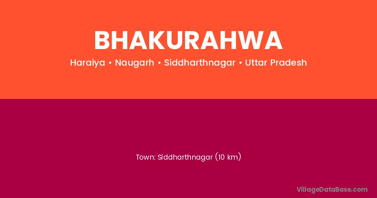 Siddharthnagar (10 km) is the nearest town to Bhakurahwa village for major economic activities and is located approximately 10 km away.