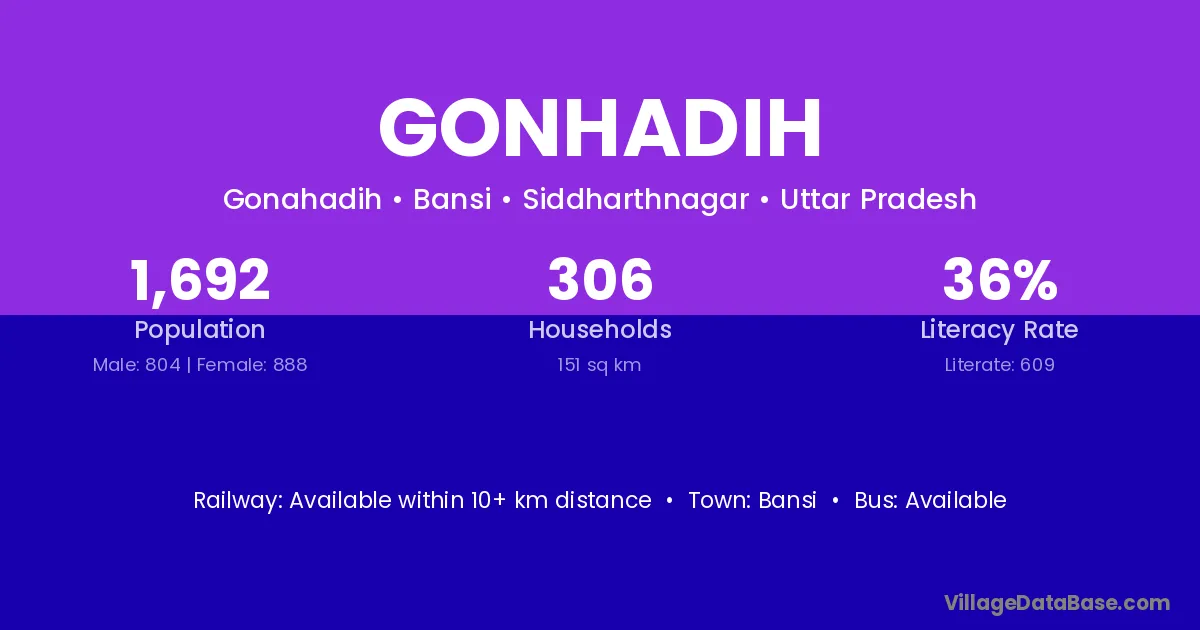 Gonhadih village is located in the Bansi Tehsil of the Siddharthnagar district in Uttar Pradesh .