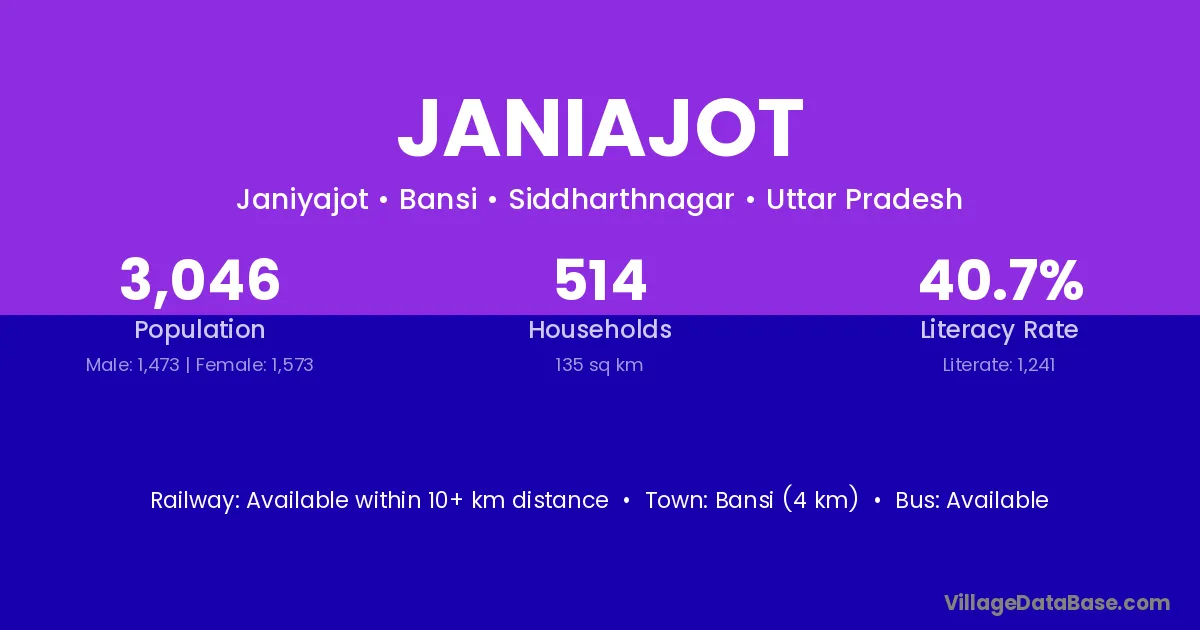 Bansi (4 km) is the nearest town to Janiajot village for major economic activities and is located approximately 4 km away.