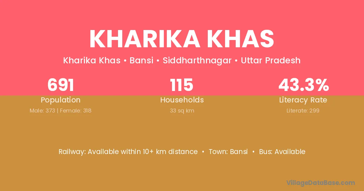 Bansi is the nearest town to Kharika Khas village for major economic activities