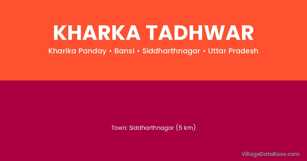 Siddharthnagar (5 km) is the nearest town to Kharka Tadhwar village for major economic activities and is located approximately 5 km away.