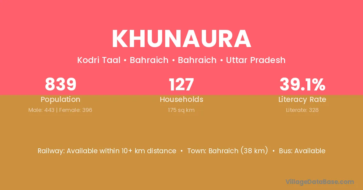 Siddharthnagar (20 km) is the nearest town to Khunaura village for major economic activities and is located approximately 20 km away.