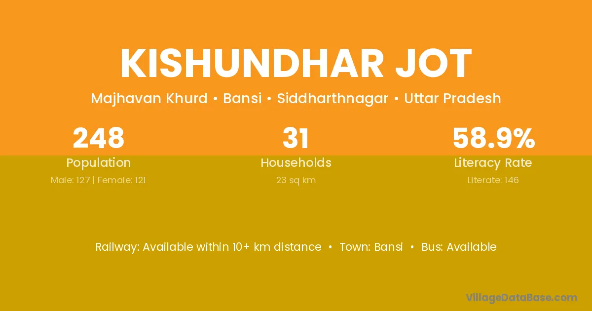 Kishundhar Jot village has a total population of 248 people, of which 127 are males and 121 are females.