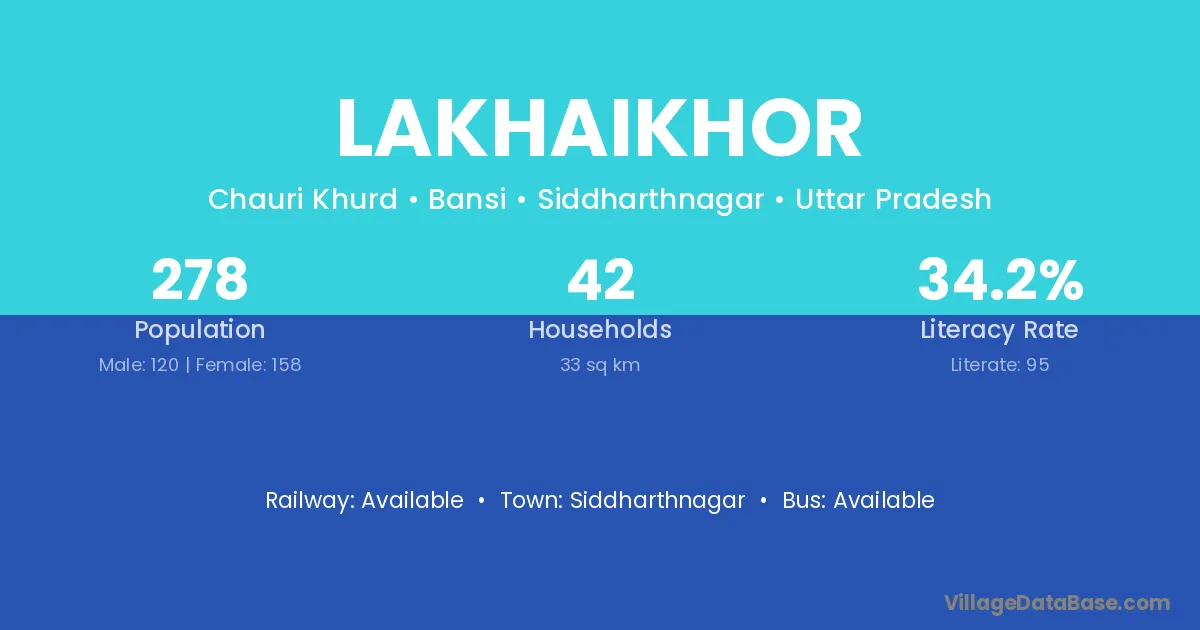 Siddharthnagar is the nearest town to Lakhaikhor village for major economic activities