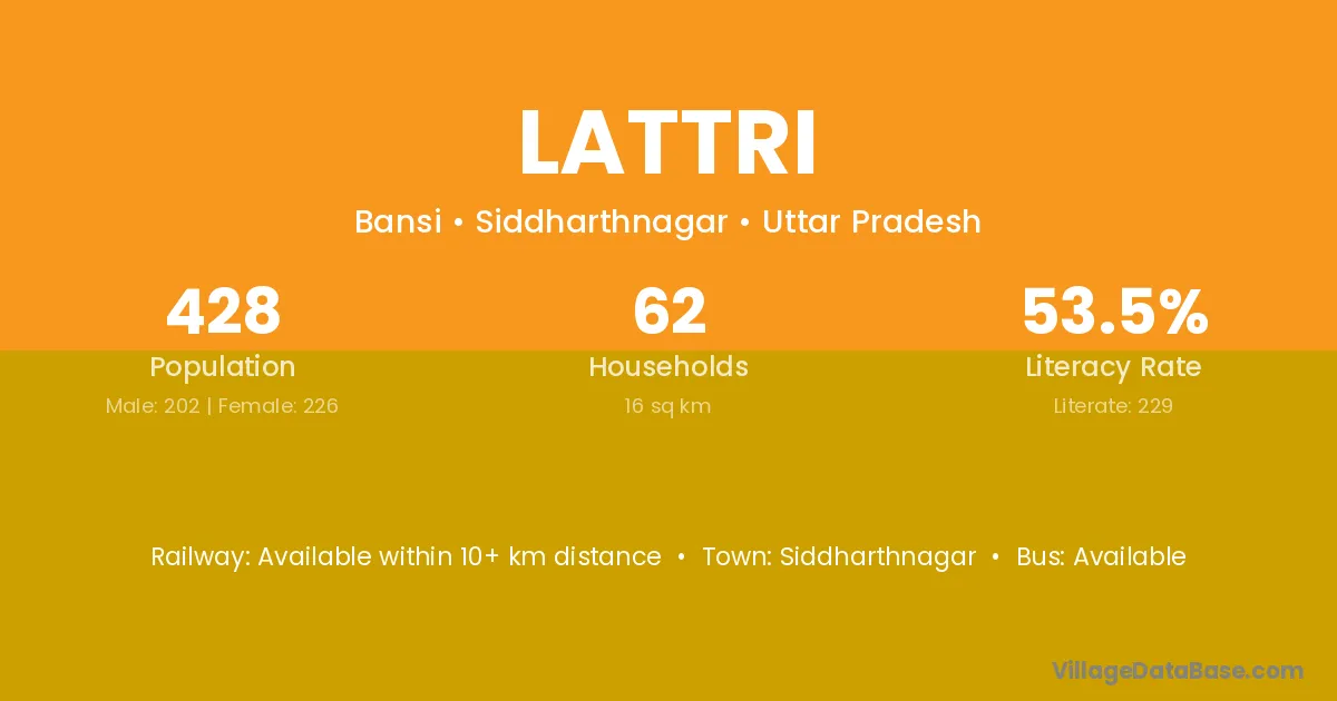 Siddharthnagar is the nearest town to Lattri village for major economic activities