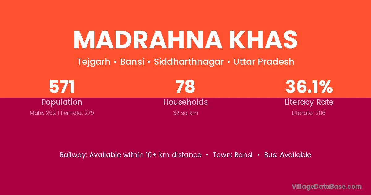 Bansi is the nearest town to Madrahna Khas village for major economic activities