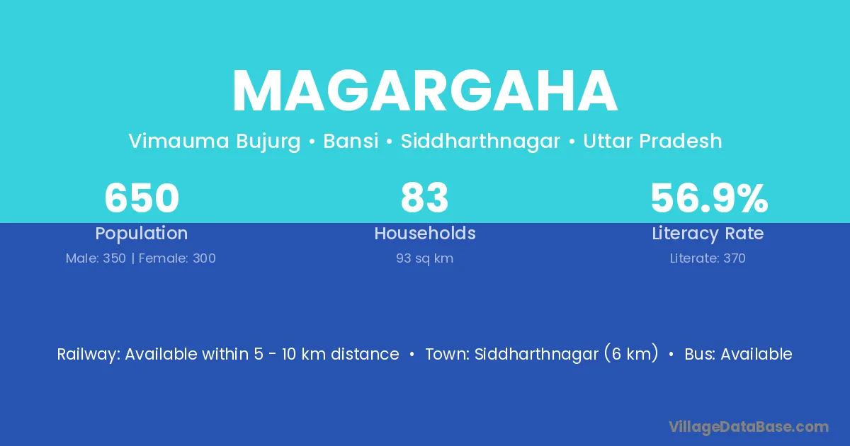 Siddharthnagar (6 km) is the nearest town to Magargaha village for major economic activities and is located approximately 6 km away.