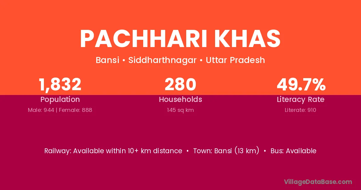 Bansi (13 km) is the nearest town to Pachhari Khas village for major economic activities and is located approximately 13 km away.