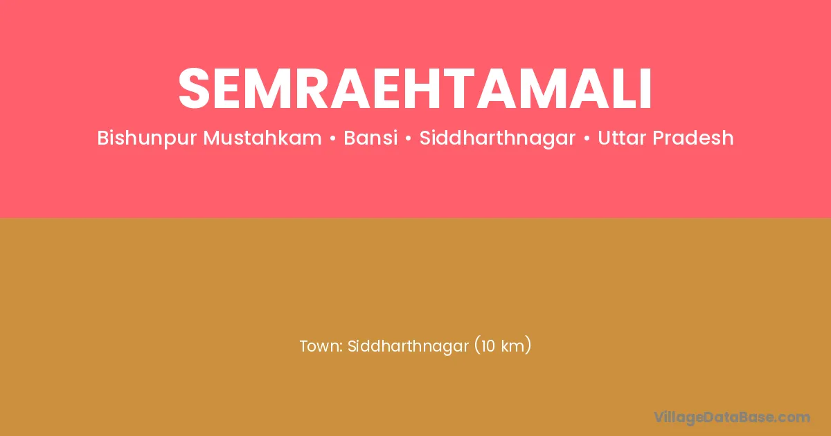 Siddharthnagar (10 km) is the nearest town to Semraehtamali village for major economic activities and is located approximately 10 km away.