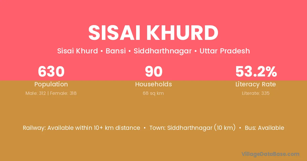 Siddharthnagar (10 km) is the nearest town to Sisai Khurd village for major economic activities and is located approximately 10 km away.