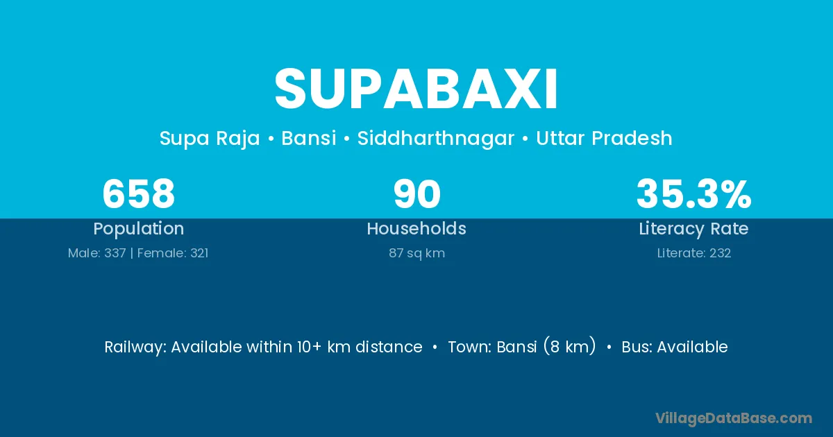 Bansi (8 km) is the nearest town to Supabaxi village for major economic activities and is located approximately 8 km away.