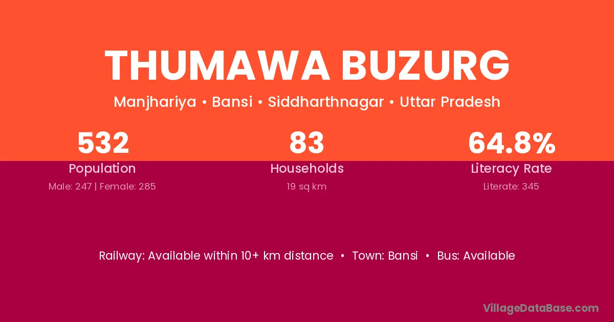 Bansi is the nearest town to Thumawa Buzurg village for major economic activities