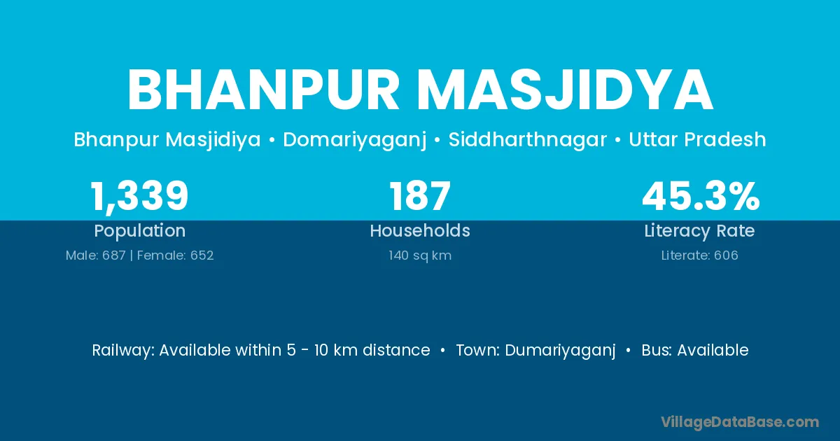 Bhanpur Masjidya village has a total population of 1,339 people, of which 687 are males and 652 are females.