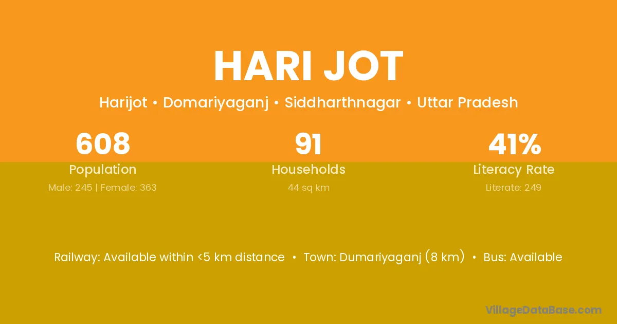 Dumariyaganj (8 km) is the nearest town to Hari Jot village for major economic activities and is located approximately 8 km away.