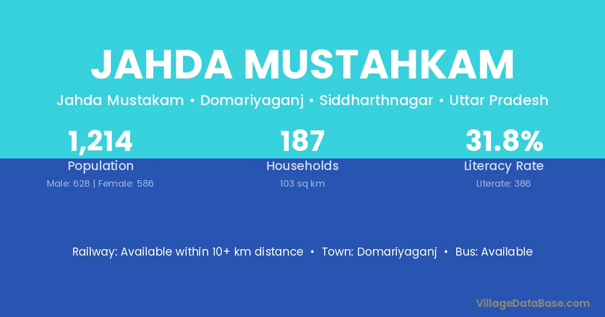 Domariyaganj is the nearest town to Jahda Mustahkam village for major economic activities