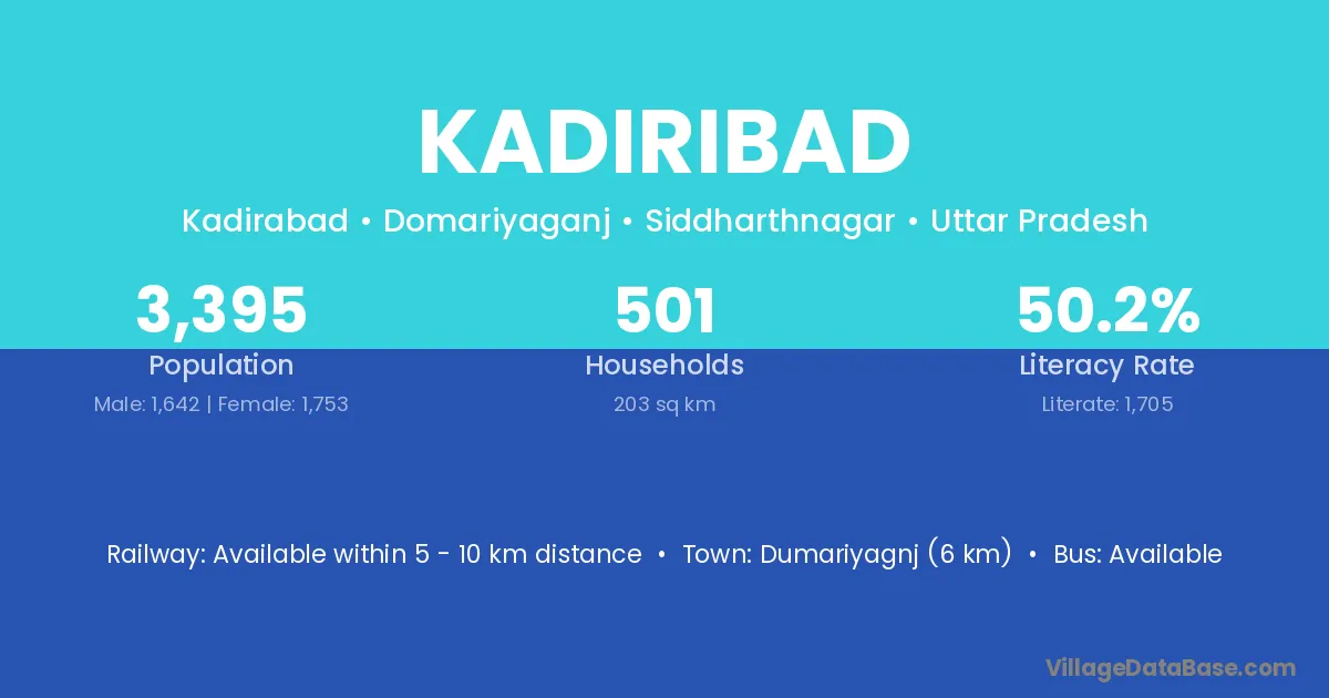 Dumariyagnj (6 km) is the nearest town to Kadiribad village for major economic activities and is located approximately 6 km away.
