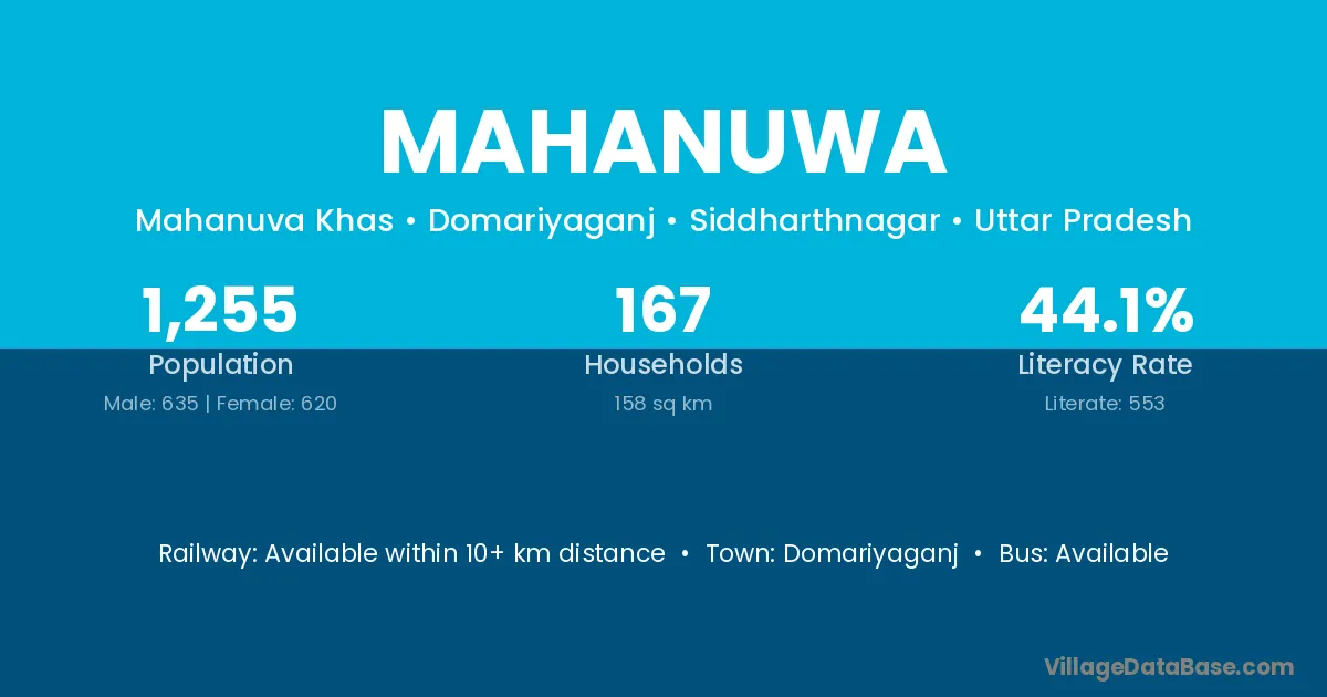 Domariyaganj is the nearest town to Mahanuwa village for major economic activities