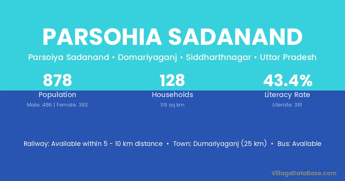 Dumariyaganj (25 km) is the nearest town to Parsohia Sadanand village for major economic activities and is located approximately 25 km away.