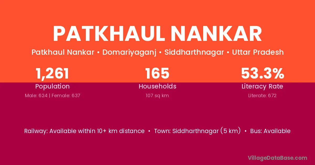 Siddharthnagar (5 km) is the nearest town to Patkhaul Nankar village for major economic activities and is located approximately 5 km away.