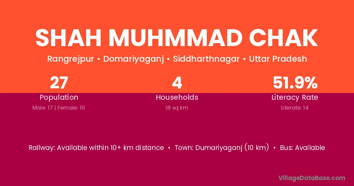 Dumariyaganj (10 km) is the nearest town to Shah Muhmmad Chak village for major economic activities and is located approximately 10 km away.