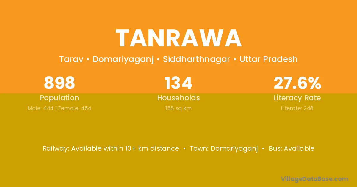Domariyaganj is the nearest town to Tanrawa village for major economic activities