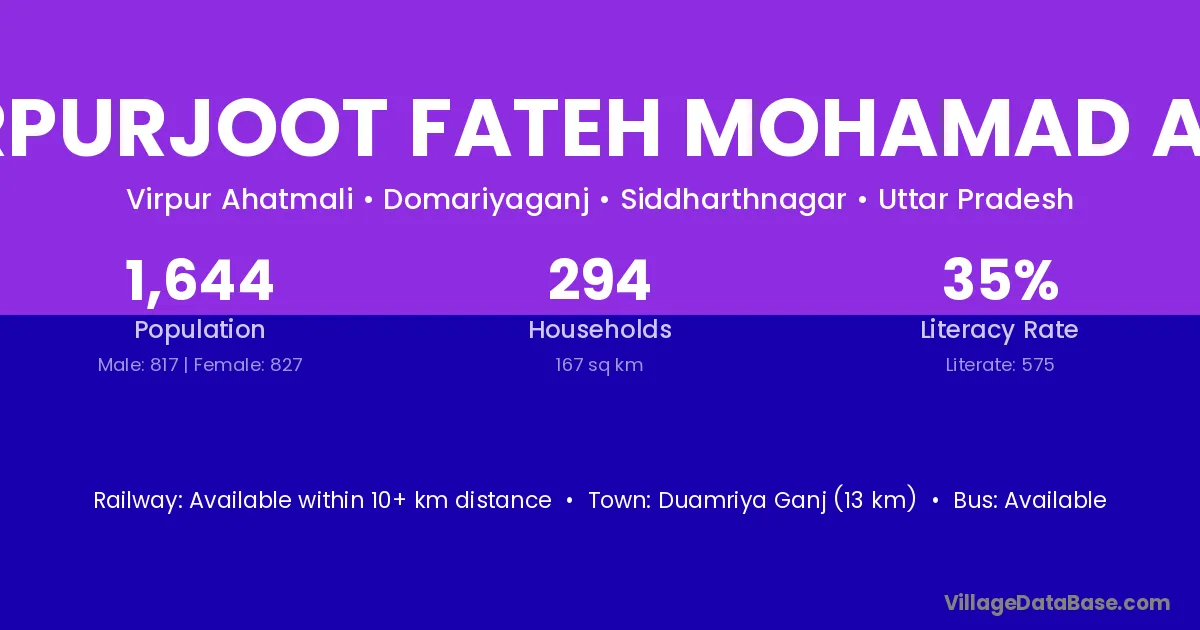 Duamriya Ganj (13 km) is the nearest town to Veerpurjoot Fateh Mohamad Ahtm village for major economic activities and is located approximately 13 km away.